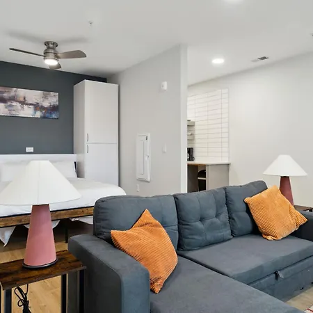 **Cozysuites Mass With Parking Lounge & Roof Deck #38** es un refugio moderno que combina comodidad y estilo en Indianápolis. A tan solo 25 km del Aeropuerto Internacional de Indianápolis, este establecimiento es la opción ideal para quienes buscan un acceso sencillo a la ciudad y sus alrededores.